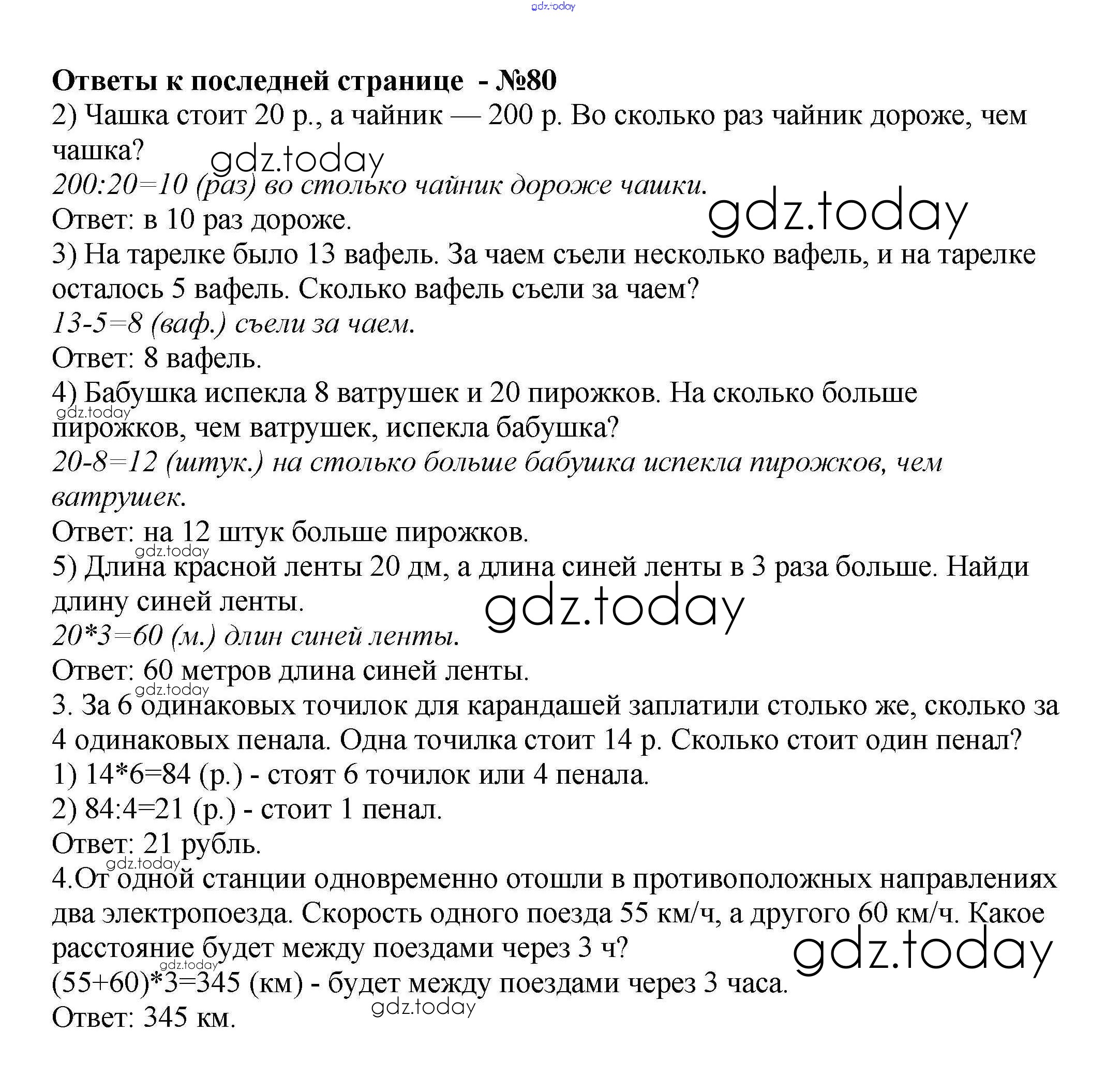 Ответы к Решение к части 2. Страницы 80 Рабочей тетради по Математике для 4 класса Волкова Просвещение Школа России 2016