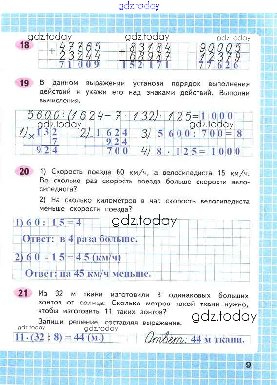 На страницах сайта gdz.today вы найдете учебный и вспомогательный материал, направленный на улучшения знаний школьной программы. ГДЗ - онлайн мир знаний Решение к части 2. Страницы 9 Рабочей тетради по Математике для 4 класса Волкова Просвещение Школа России 2016