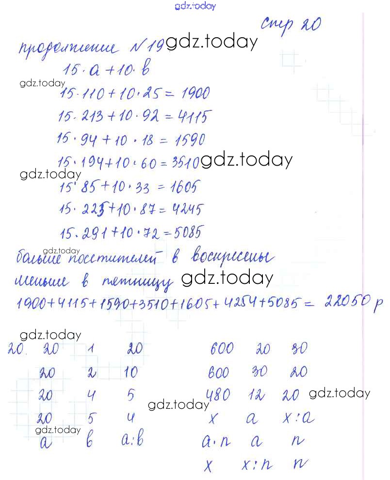 Ответы к Решение к части 2 (страницы) 20 Дидактическим материалам по Математике для 4 класса Рудницкая, Юдачева Вентана-граф 2013