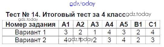 Ответы к Решение к тестам 14 Контрольно-измерительным материалам (КИМ) по Математике для 4 класса Рудницкая Экзамен 2014