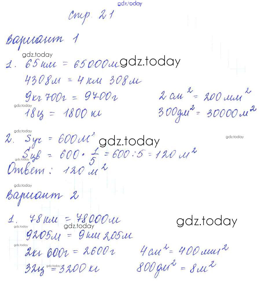 Ответы к Решение к части 1 (страницы) 21 Контрольным работам по Математике для 4 класса Рудницкая Экзамен УМК 2014