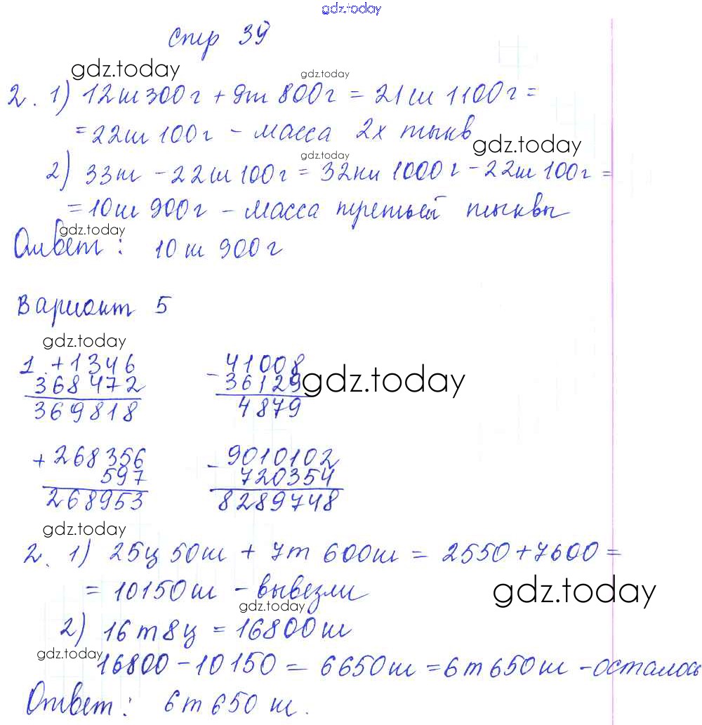 На страницах сайта gdz.today вы найдете учебный и вспомогательный материал, направленный на улучшения знаний школьной программы. ГДЗ - онлайн мир знаний Решение к части 1 (страницы) 39 Контрольным работам по Математике для 4 класса Рудницкая Экзамен УМК 2014