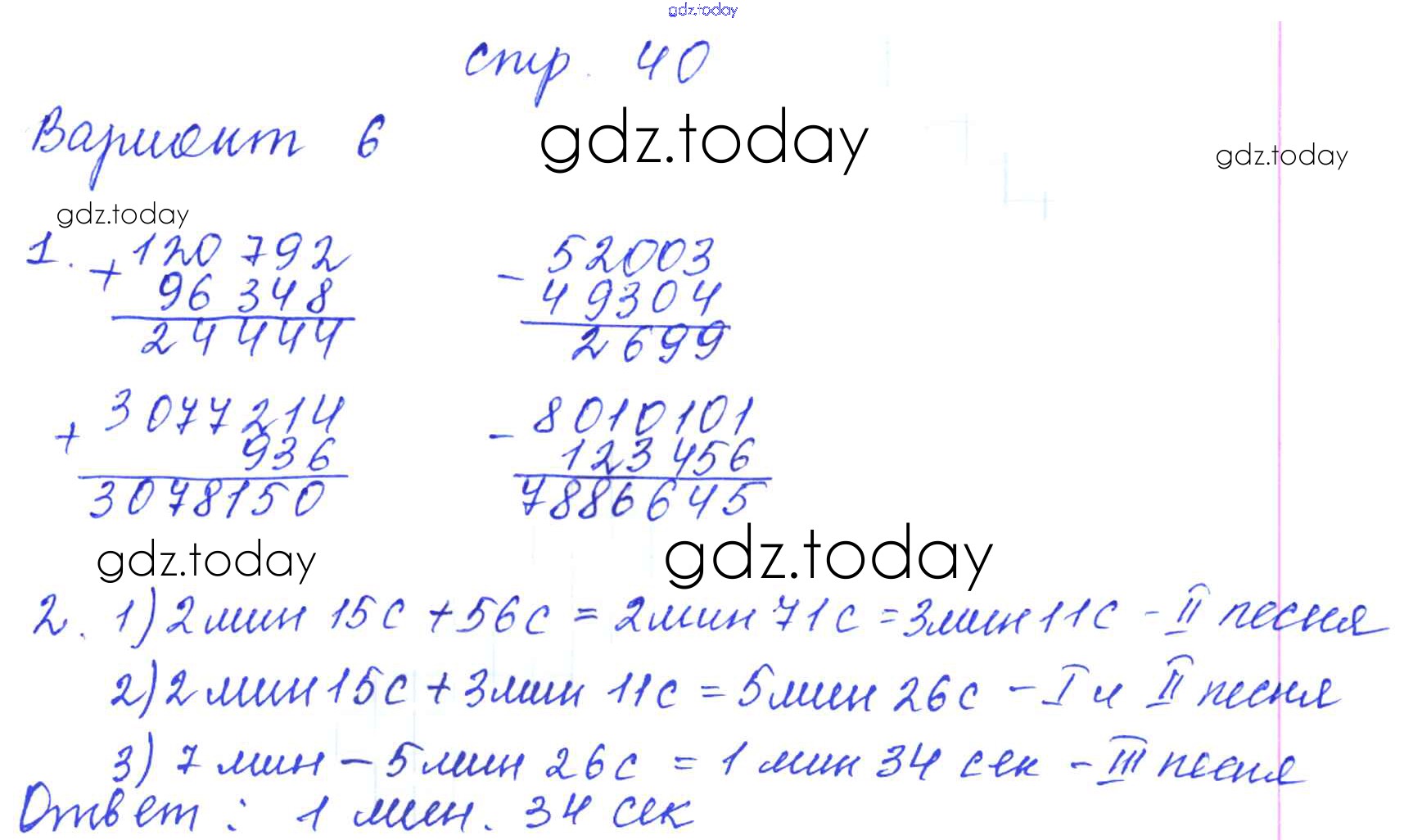 На страницах сайта gdz.today вы найдете учебный и вспомогательный материал, направленный на улучшения знаний школьной программы. ГДЗ - онлайн мир знаний Решение к части 1 (страницы) 40 Контрольным работам по Математике для 4 класса Рудницкая Экзамен УМК 2014
