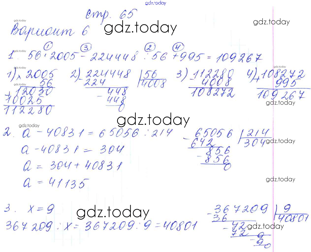 На страницах сайта gdz.today вы найдете учебный и вспомогательный материал, направленный на улучшения знаний школьной программы. ГДЗ - онлайн мир знаний Решение к части 2 (страницы) 65 Контрольным работам по Математике для 4 класса Рудницкая Экзамен УМК 2014