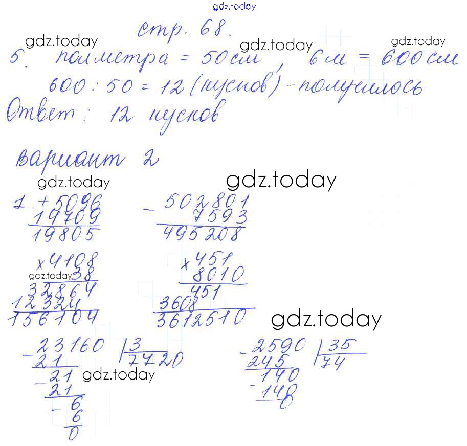 На страницах сайта gdz.today вы найдете учебный и вспомогательный материал, направленный на улучшения знаний школьной программы. ГДЗ - онлайн мир знаний Решение к части 2 (страницы) 68 Контрольным работам по Математике для 4 класса Рудницкая Экзамен УМК 2014