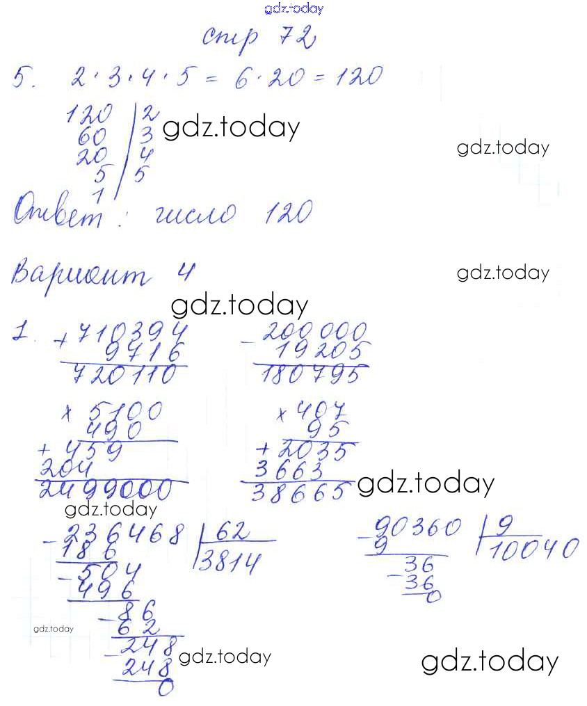 На страницах сайта gdz.today вы найдете учебный и вспомогательный материал, направленный на улучшения знаний школьной программы. ГДЗ - онлайн мир знаний Решение к части 2 (страницы) 72 Контрольным работам по Математике для 4 класса Рудницкая Экзамен УМК 2014