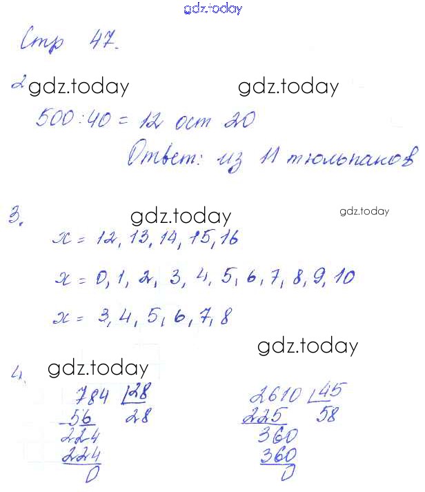 На страницах сайта gdz.today вы найдете учебный и вспомогательный материал, направленный на улучшения знаний школьной программы. ГДЗ - онлайн мир знаний Страницы (решение) 47 Тетради для самостоятельной работы по Математике для 4 класса Чуракова, Янычева Академкнига Перспективная начальная школа 2017