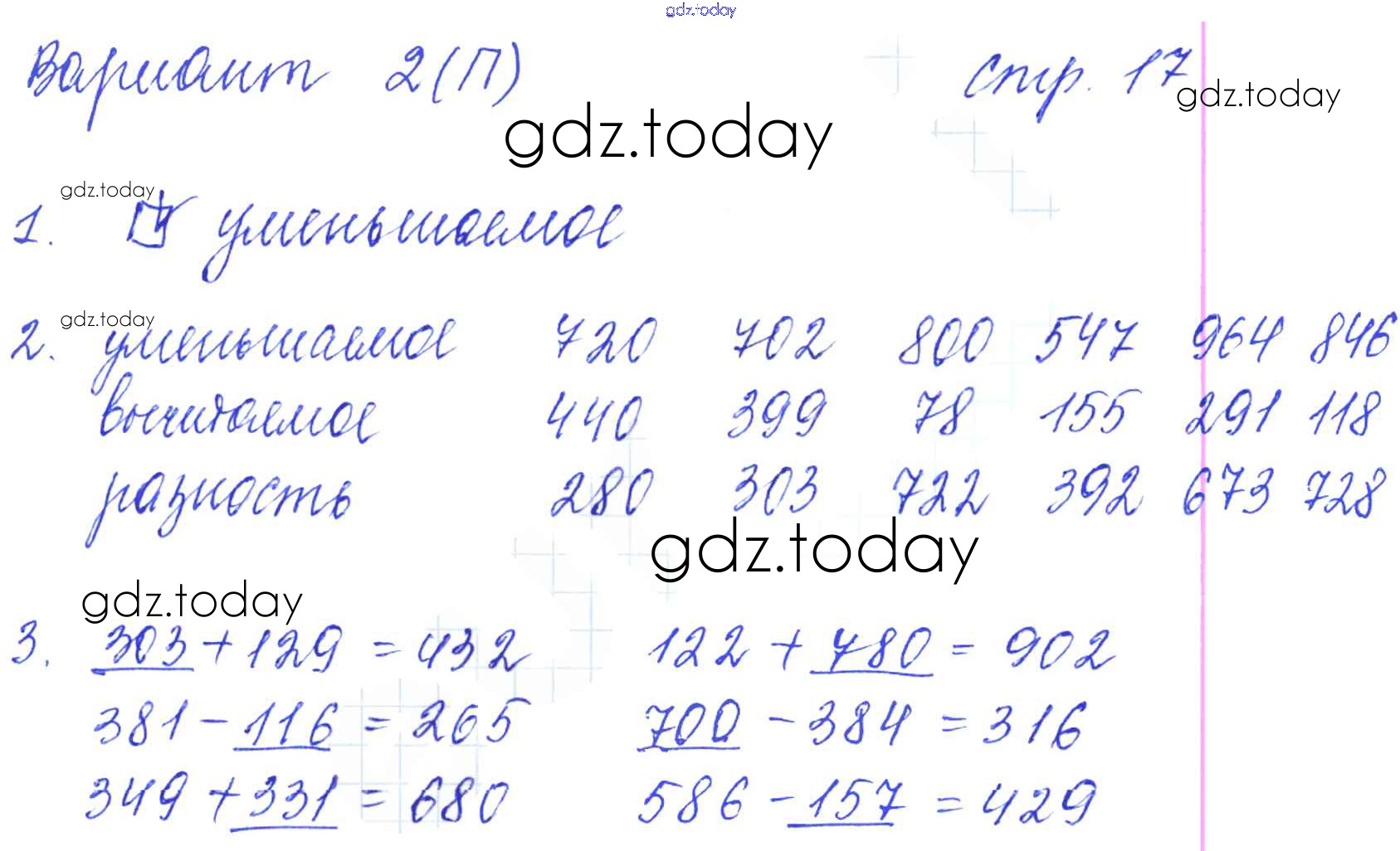 На страницах сайта gdz.today вы найдете учебный и вспомогательный материал, направленный на улучшения знаний школьной программы. ГДЗ - онлайн мир знаний Решение к части 1. Страницы 17 Тетради для самостоятельной работы по Математике для 4 класса Самсонова Экзамен УМК 2011
