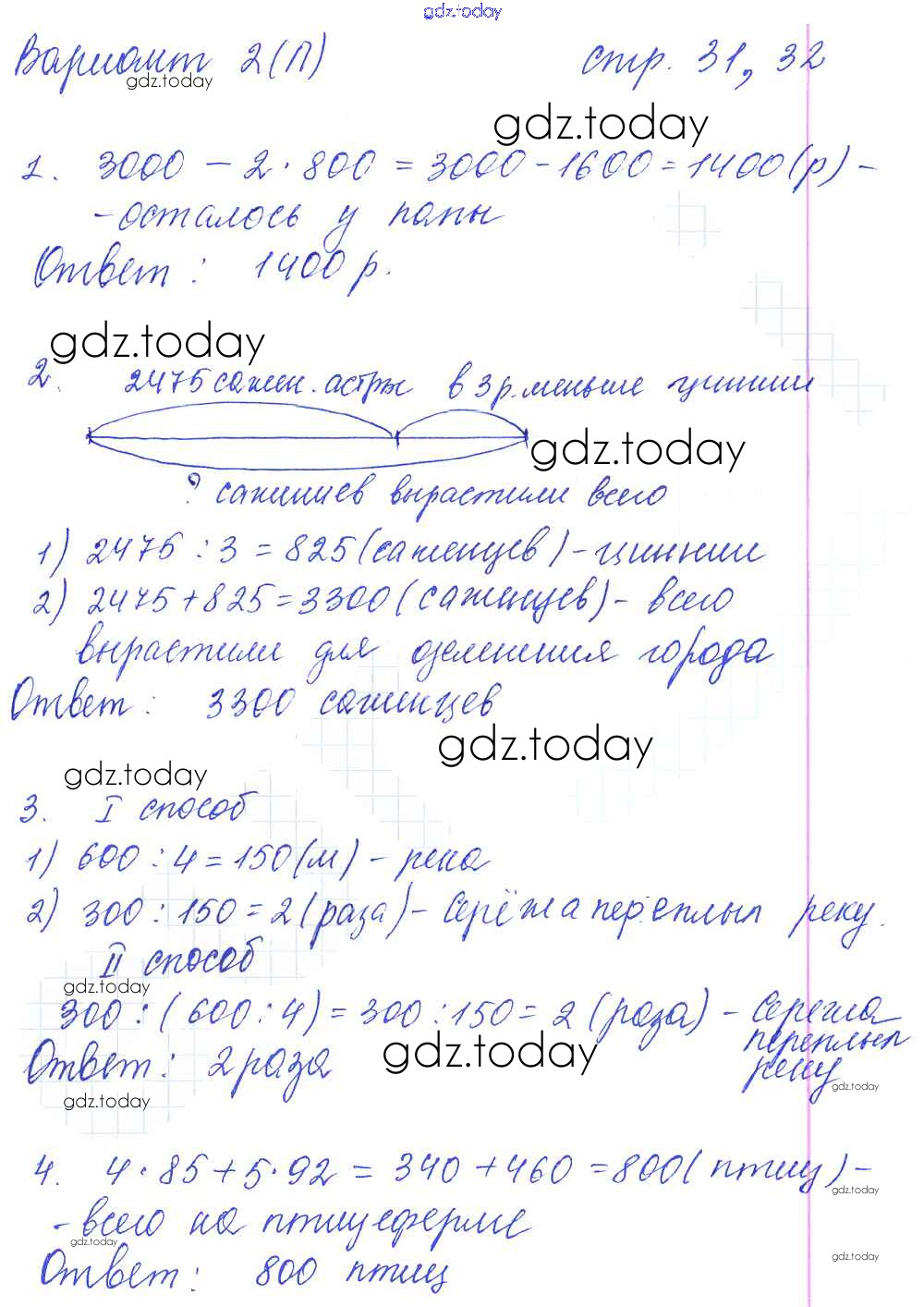 Ответы к Решение к части 2. Страницы 31-32 Тетради для самостоятельной работы по Математике для 4 класса Самсонова Экзамен УМК 2011