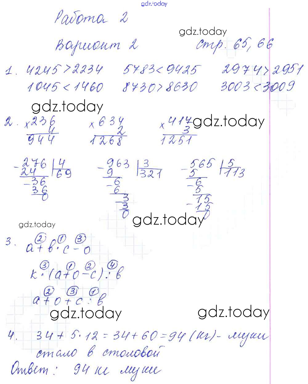 На страницах сайта gdz.today вы найдете учебный и вспомогательный материал, направленный на улучшения знаний школьной программы. ГДЗ - онлайн мир знаний Решение к части 2. Страницы 65-66 Тетради для самостоятельной работы по Математике для 4 класса Самсонова Экзамен УМК 2011