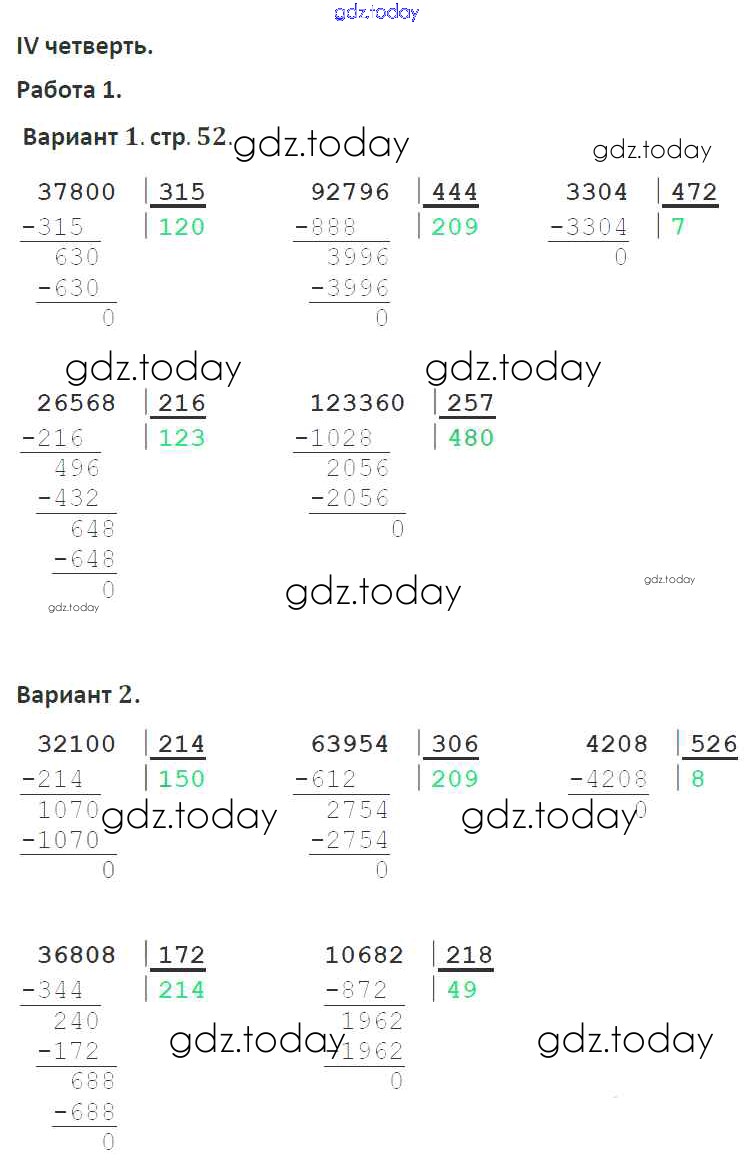 Ответы к Страницы (решение) 52 Тетради для контрольных работ по Математике для 4 класса Рудницкая, Юдачева Вентана-граф Начальная школа XXI века 2018