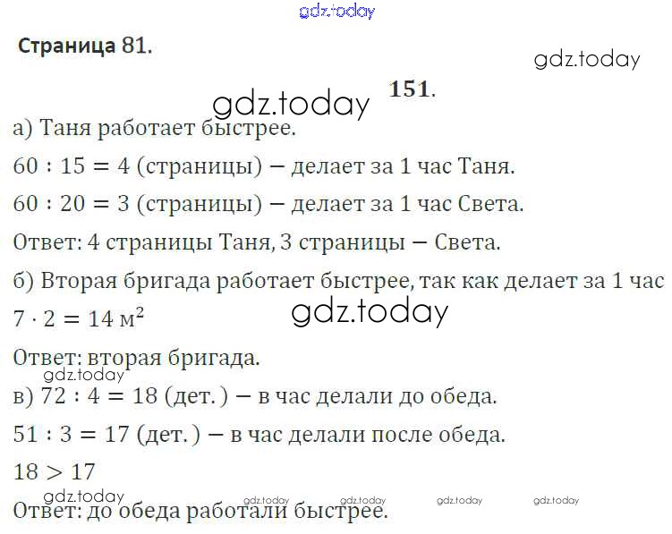 Ответы к Решение к части 1. Задания 151 Тетради для самостоятельной работы по Математике для 4 класса Захарова, Юдина Академкнига 2015