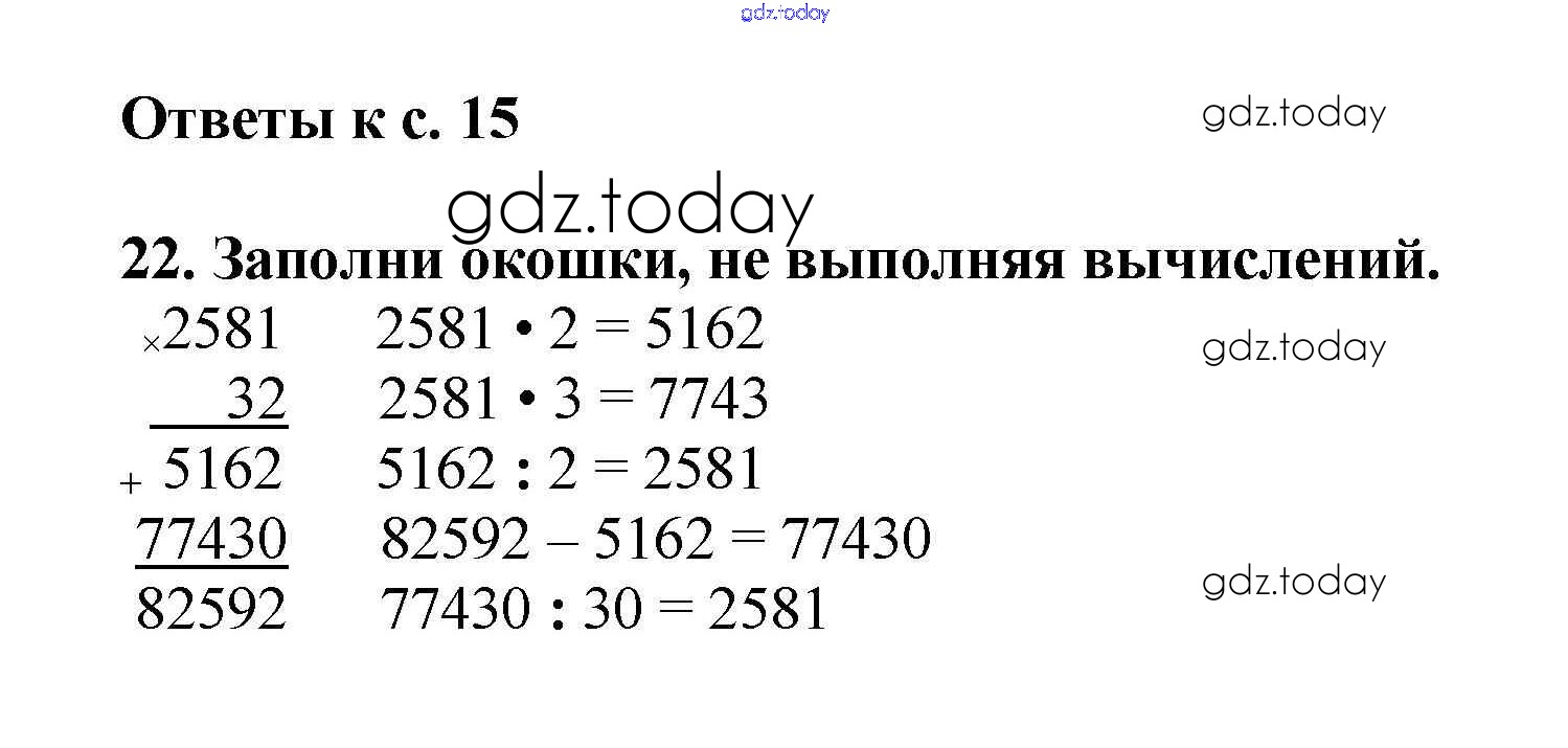 На страницах сайта gdz.today вы найдете учебный и вспомогательный материал, направленный на улучшения знаний школьной программы. ГДЗ - онлайн мир знаний Решение к части 1. Задания 22 Тетради для самостоятельной работы по Математике для 4 класса Захарова, Юдина Академкнига 2015