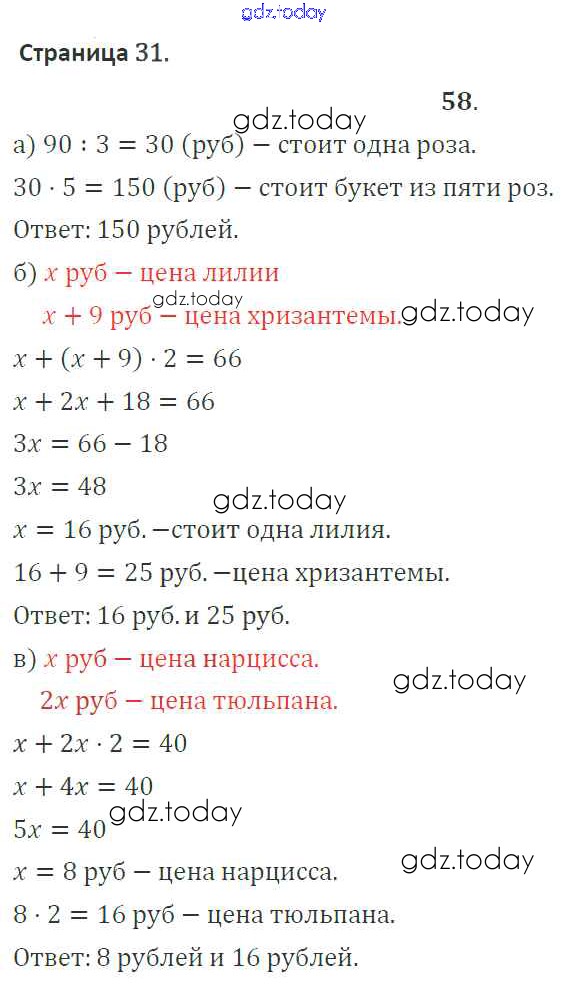 Ответы к Решение к части 1. Задания 58 Тетради для самостоятельной работы по Математике для 4 класса Захарова, Юдина Академкнига 2015