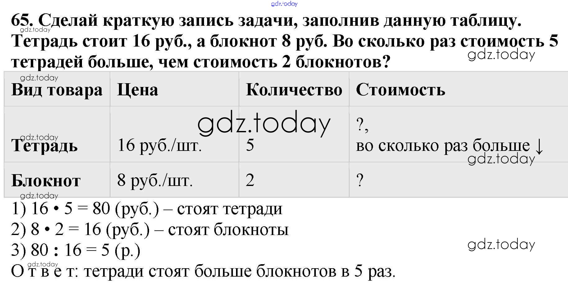 На страницах сайта gdz.today вы найдете учебный и вспомогательный материал, направленный на улучшения знаний школьной программы. ГДЗ - онлайн мир знаний Решение к части 1. Задания 65 Тетради для самостоятельной работы по Математике для 4 класса Захарова, Юдина Академкнига 2015