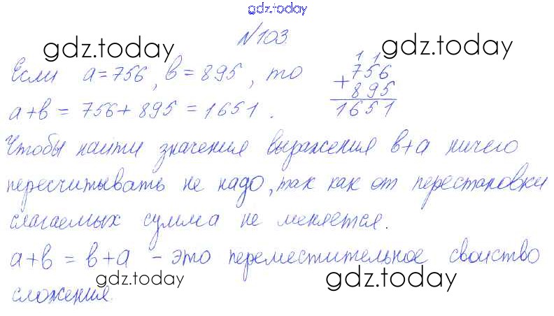 На страницах сайта gdz.today вы найдете учебный и вспомогательный материал, направленный на улучшения знаний школьной программы. ГДЗ - онлайн мир знаний Решение к части 1 (упражнения) 103 Учебнику по Математике для 4 класса Чекин Академкнига Перспективная начальная школа 2012