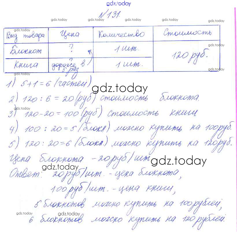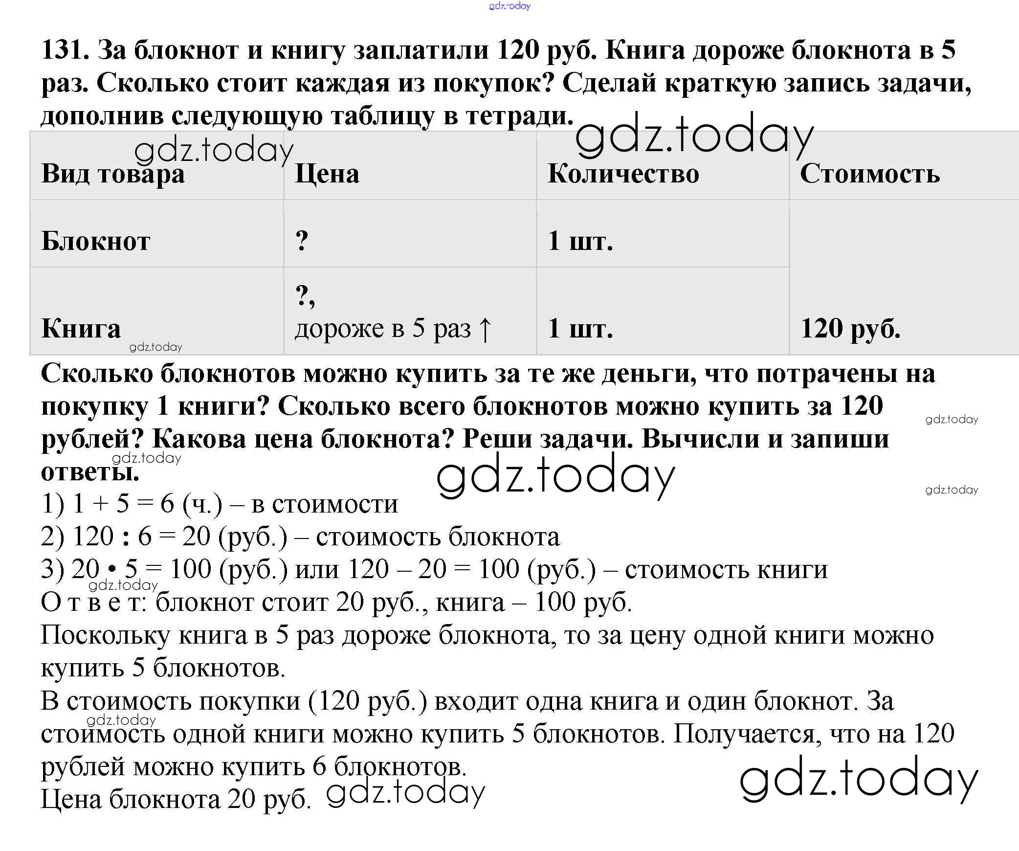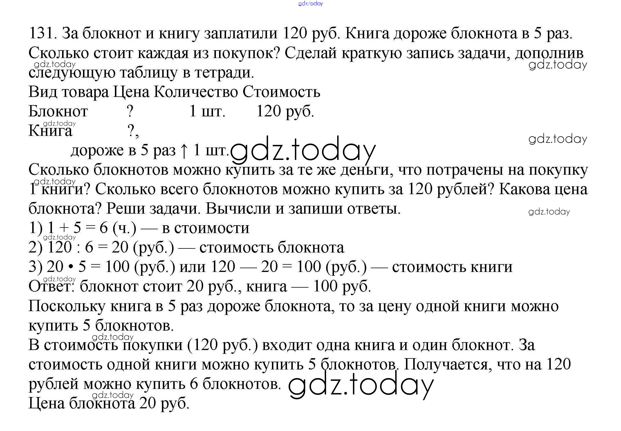 На страницах сайта gdz.today вы найдете учебный и вспомогательный материал, направленный на улучшения знаний школьной программы. ГДЗ - онлайн мир знаний Решение к части 1 (упражнения) 131 Учебнику по Математике для 4 класса Чекин Академкнига Перспективная начальная школа 2012
