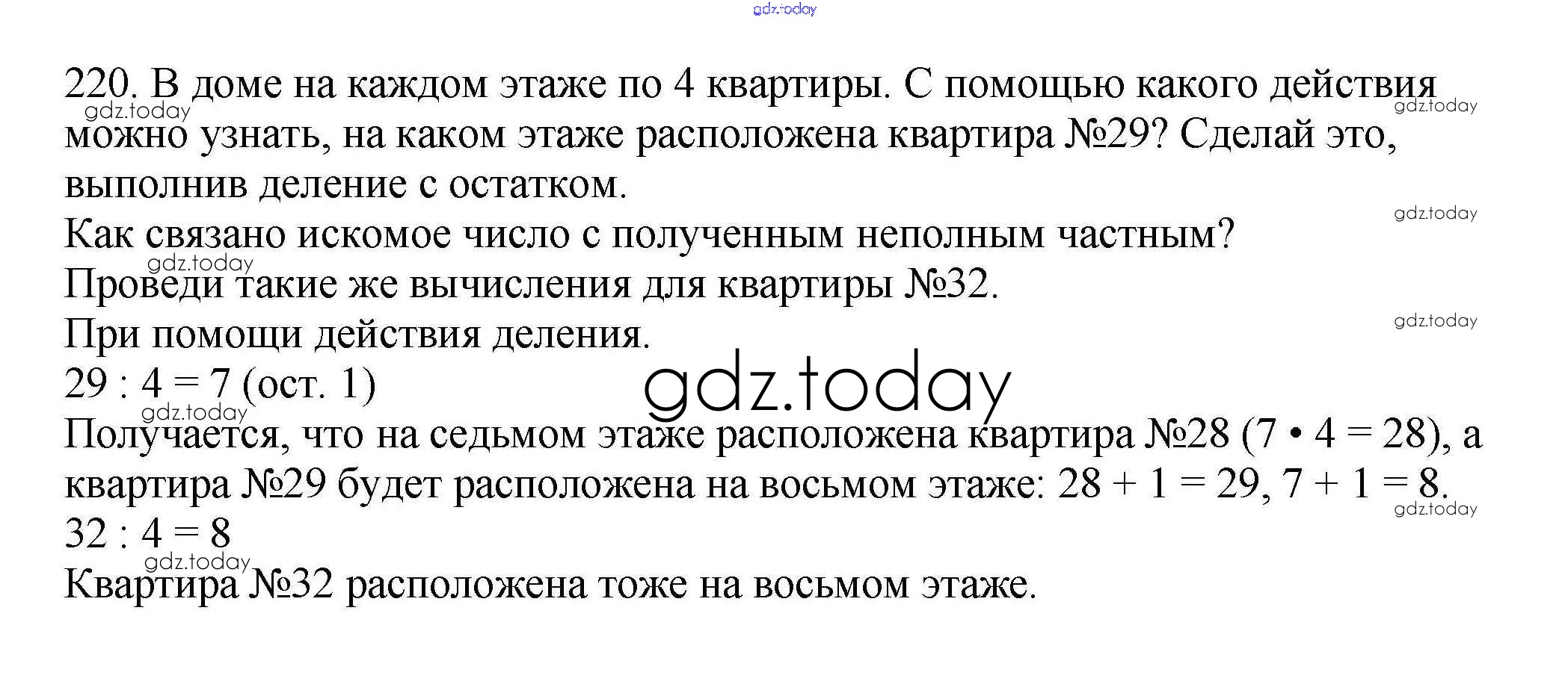 На страницах сайта gdz.today вы найдете учебный и вспомогательный материал, направленный на улучшения знаний школьной программы. ГДЗ - онлайн мир знаний Решение к части 1 (упражнения) 220 Учебнику по Математике для 4 класса Чекин Академкнига Перспективная начальная школа 2012