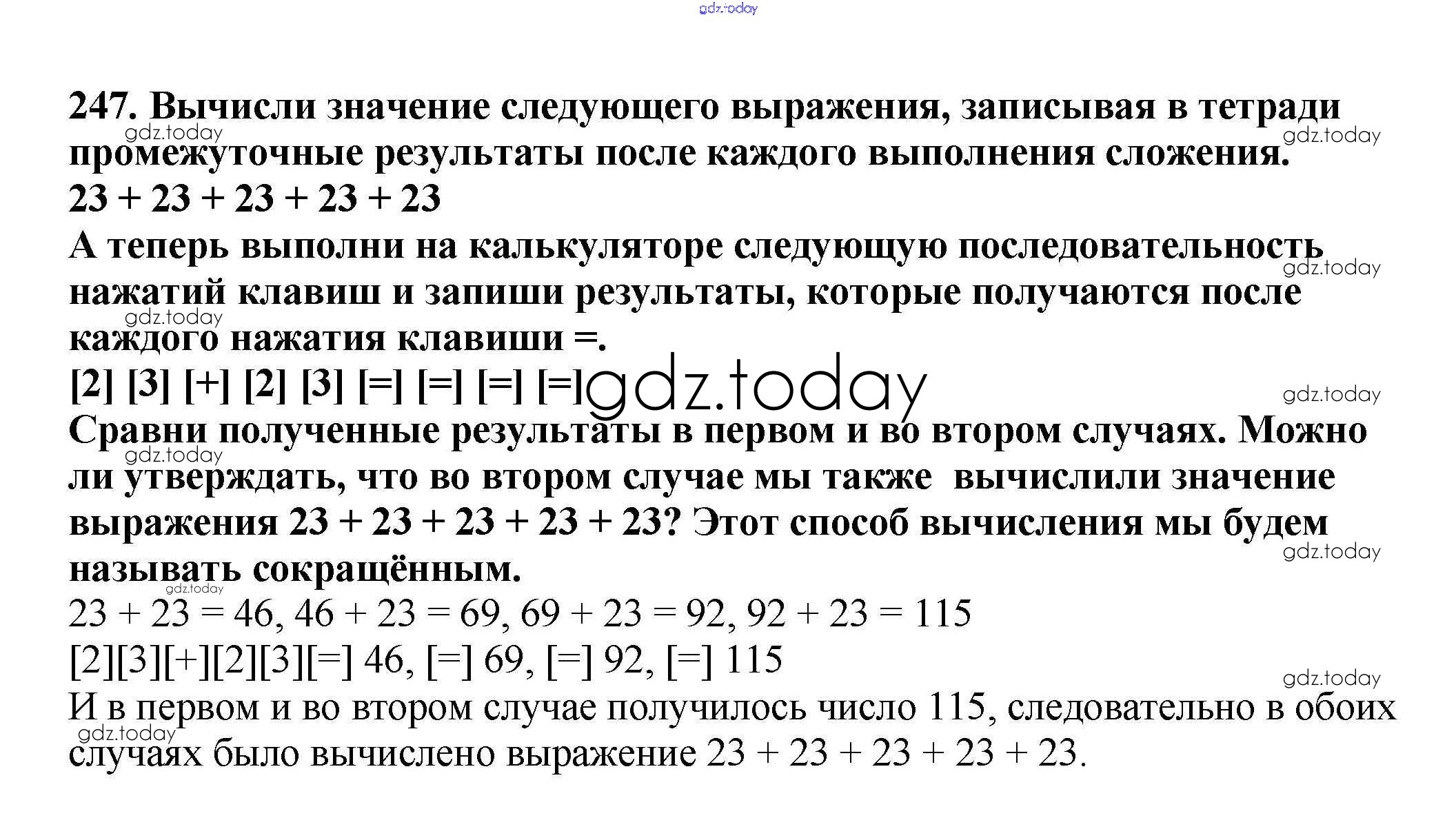 На страницах сайта gdz.today вы найдете учебный и вспомогательный материал, направленный на улучшения знаний школьной программы. ГДЗ - онлайн мир знаний Решение к части 1 (упражнения) 247 Учебнику по Математике для 4 класса Чекин Академкнига Перспективная начальная школа 2012