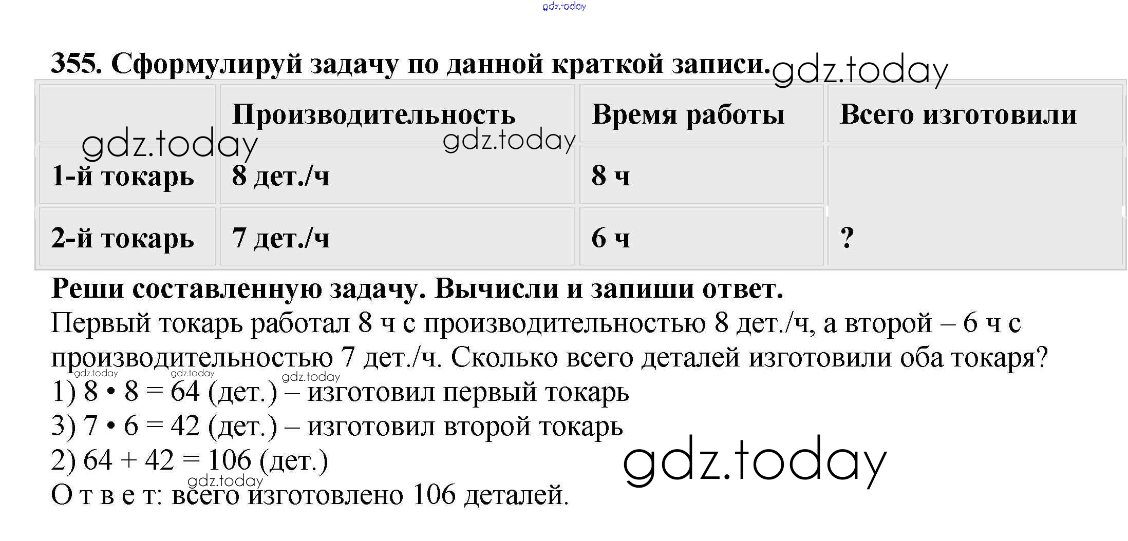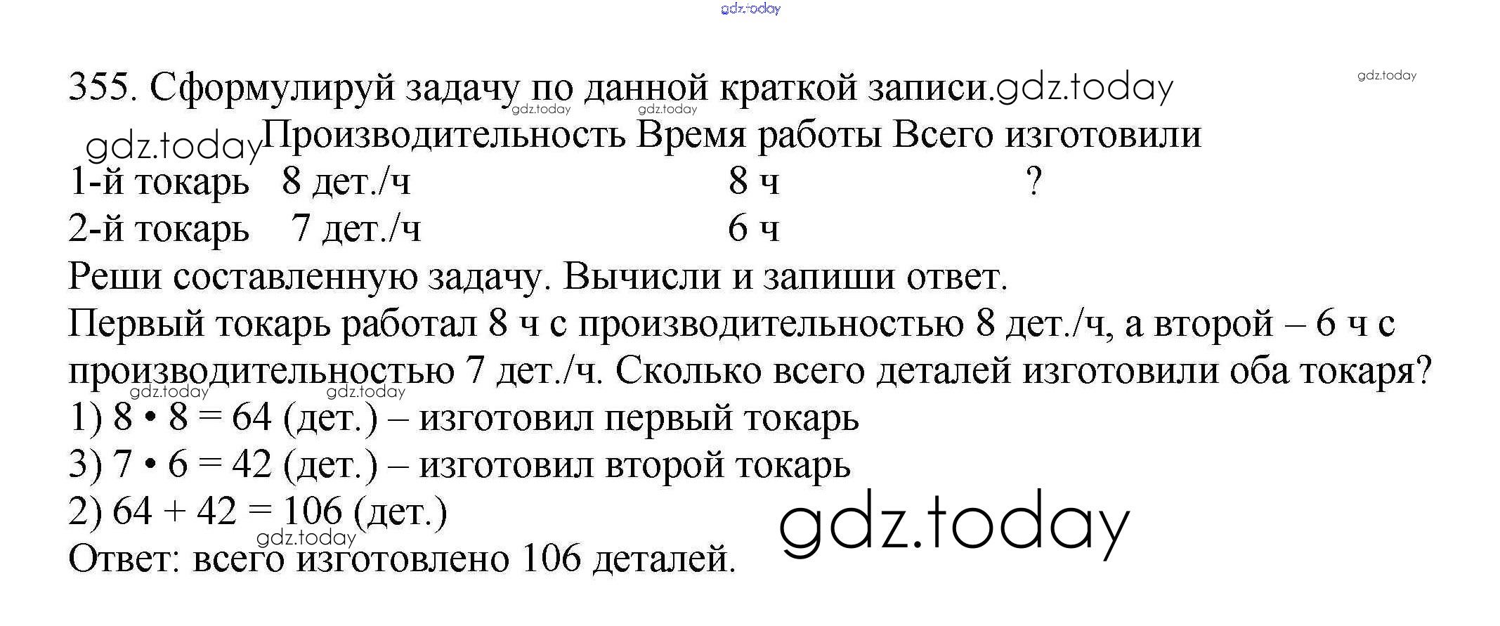 На страницах сайта gdz.today вы найдете учебный и вспомогательный материал, направленный на улучшения знаний школьной программы. ГДЗ - онлайн мир знаний Решение к части 1 (упражнения) 355 Учебнику по Математике для 4 класса Чекин Академкнига Перспективная начальная школа 2012