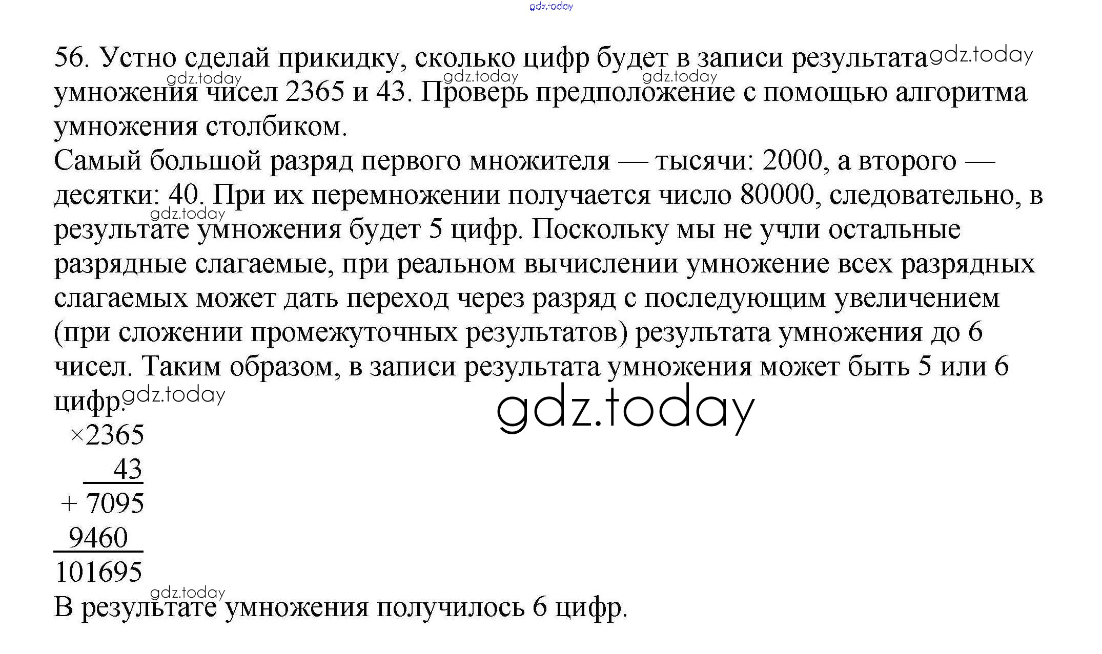 На страницах сайта gdz.today вы найдете учебный и вспомогательный материал, направленный на улучшения знаний школьной программы. ГДЗ - онлайн мир знаний Решение к части 1 (упражнения) 56 Учебнику по Математике для 4 класса Чекин Академкнига Перспективная начальная школа 2012