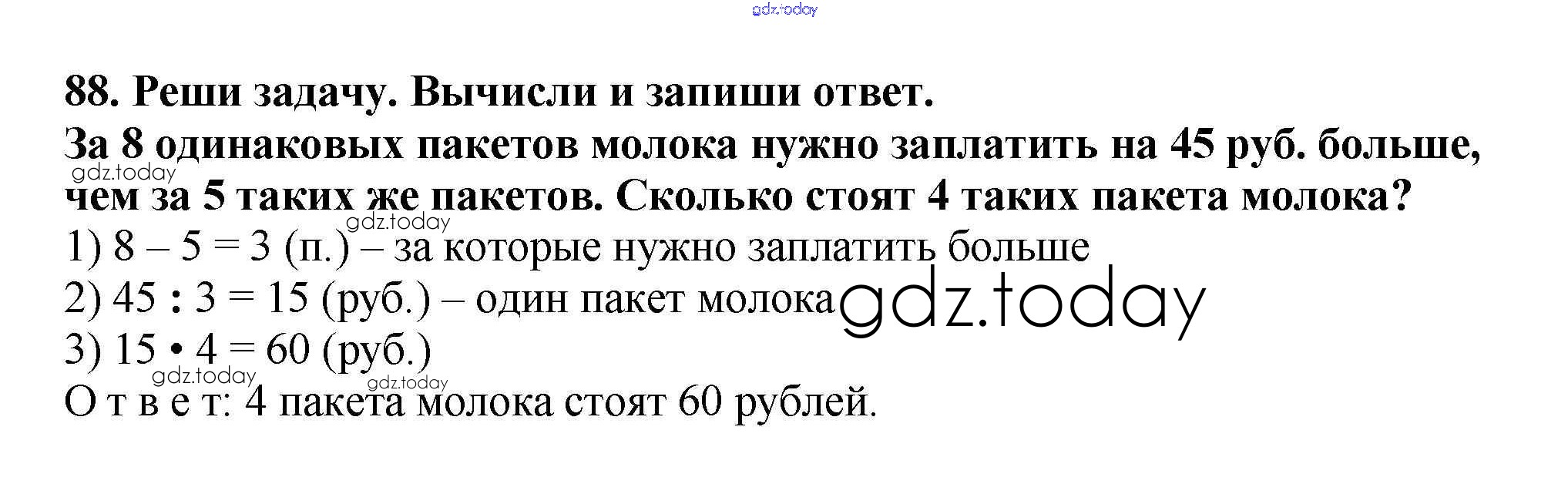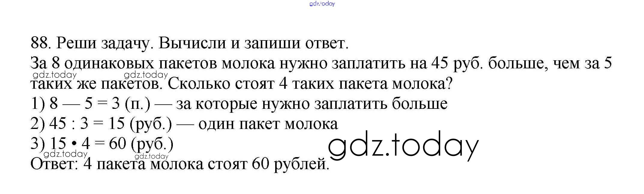 На страницах сайта gdz.today вы найдете учебный и вспомогательный материал, направленный на улучшения знаний школьной программы. ГДЗ - онлайн мир знаний Решение к части 1 (упражнения) 88 Учебнику по Математике для 4 класса Чекин Академкнига Перспективная начальная школа 2012