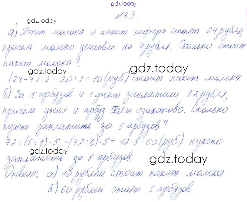 Ответы к Решение к части 1 (упражнения) 89 Учебнику по Математике для 4 класса Чекин Академкнига Перспективная начальная школа 2012