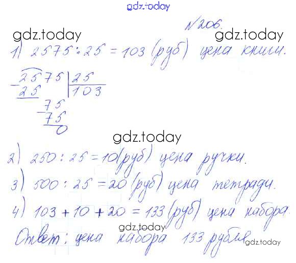 Ответы к Решение к части 2 (упражнения) 206 Учебнику по Математике для 4 класса Чекин Академкнига Перспективная начальная школа 2012