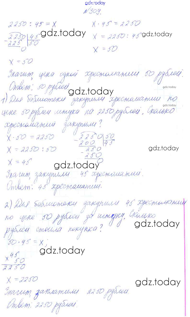 Ответы к Решение к части 2 (упражнения) 309 Учебнику по Математике для 4 класса Чекин Академкнига Перспективная начальная школа 2012