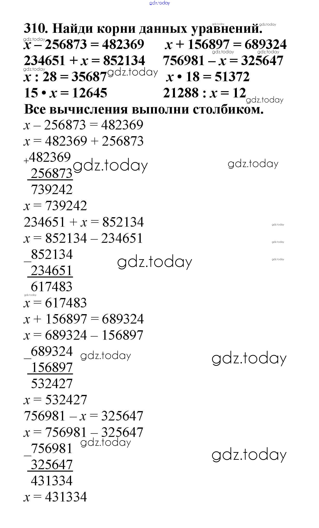 На страницах сайта gdz.today вы найдете учебный и вспомогательный материал, направленный на улучшения знаний школьной программы. ГДЗ - онлайн мир знаний Решение к части 2 (упражнения) 310 Учебнику по Математике для 4 класса Чекин Академкнига Перспективная начальная школа 2012