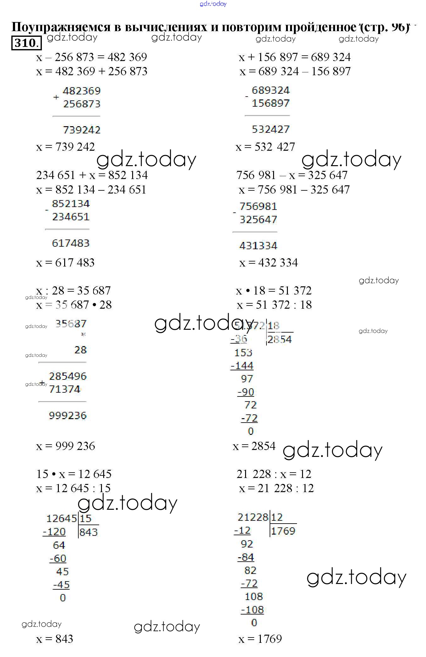 Ответы к Решение к части 2 (упражнения) 310 Учебнику по Математике для 4 класса Чекин Академкнига Перспективная начальная школа 2012