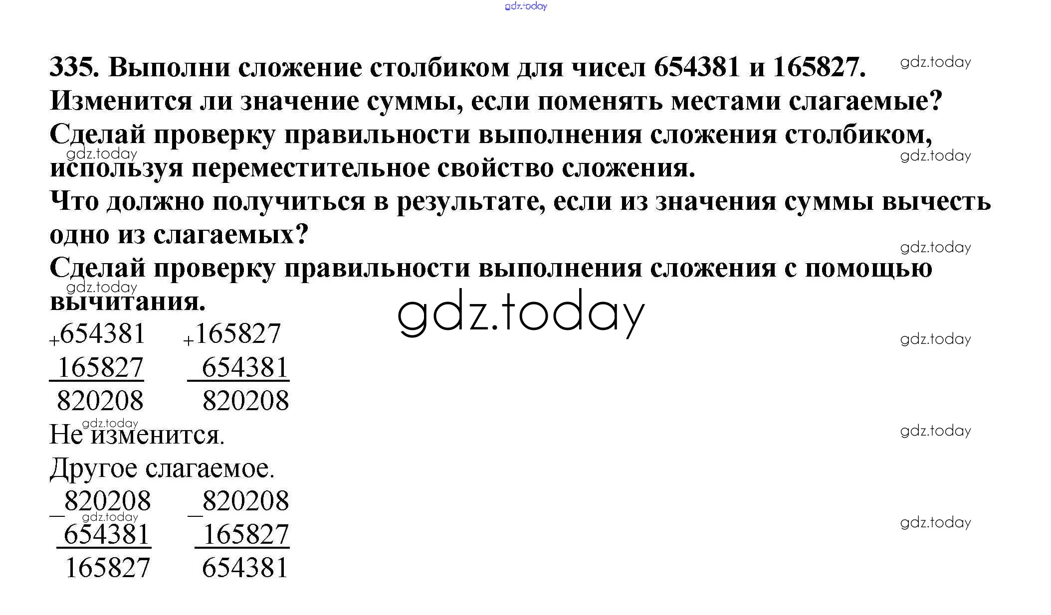 На страницах сайта gdz.today вы найдете учебный и вспомогательный материал, направленный на улучшения знаний школьной программы. ГДЗ - онлайн мир знаний Решение к части 2 (упражнения) 335 Учебнику по Математике для 4 класса Чекин Академкнига Перспективная начальная школа 2012