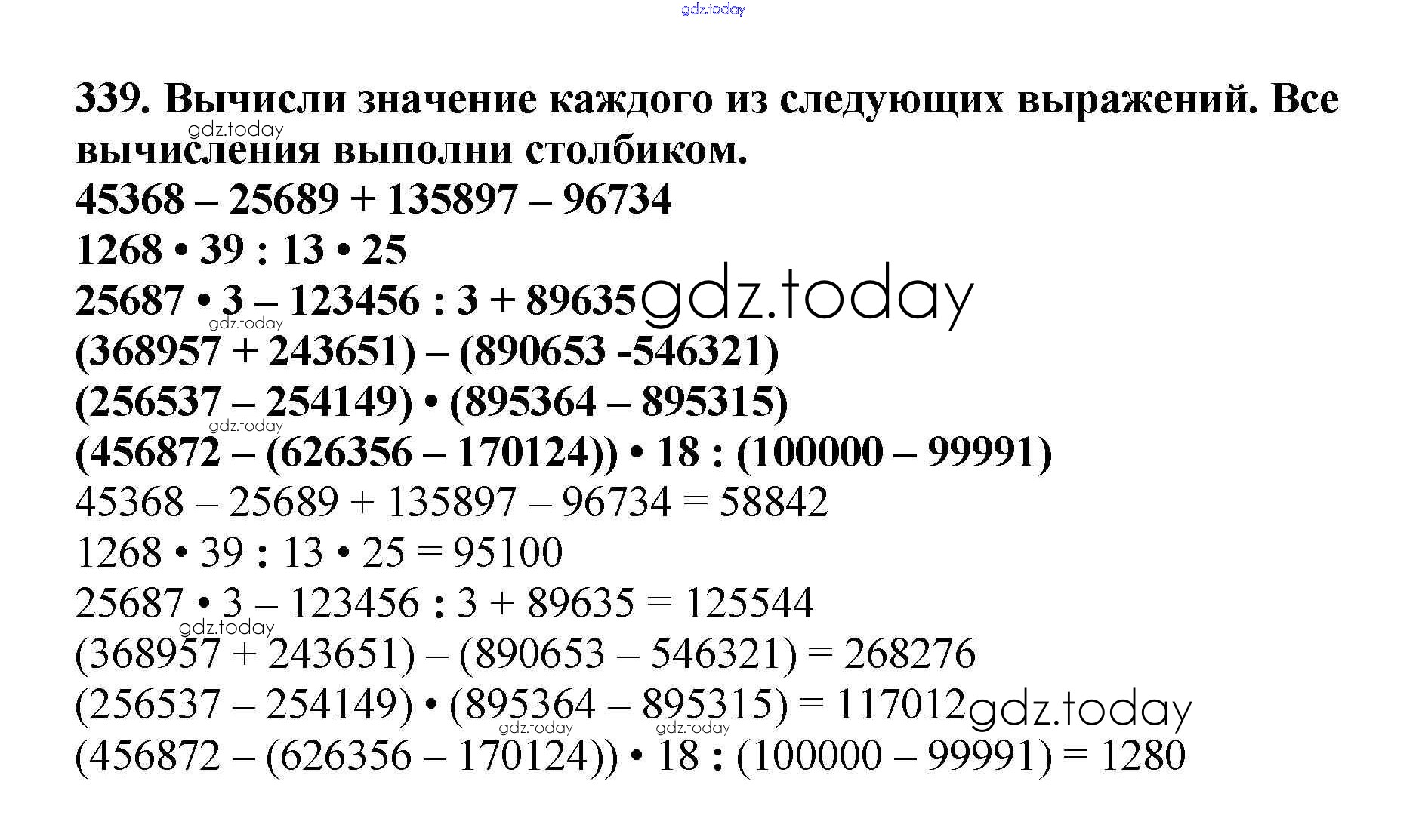 На страницах сайта gdz.today вы найдете учебный и вспомогательный материал, направленный на улучшения знаний школьной программы. ГДЗ - онлайн мир знаний Решение к части 2 (упражнения) 339 Учебнику по Математике для 4 класса Чекин Академкнига Перспективная начальная школа 2012