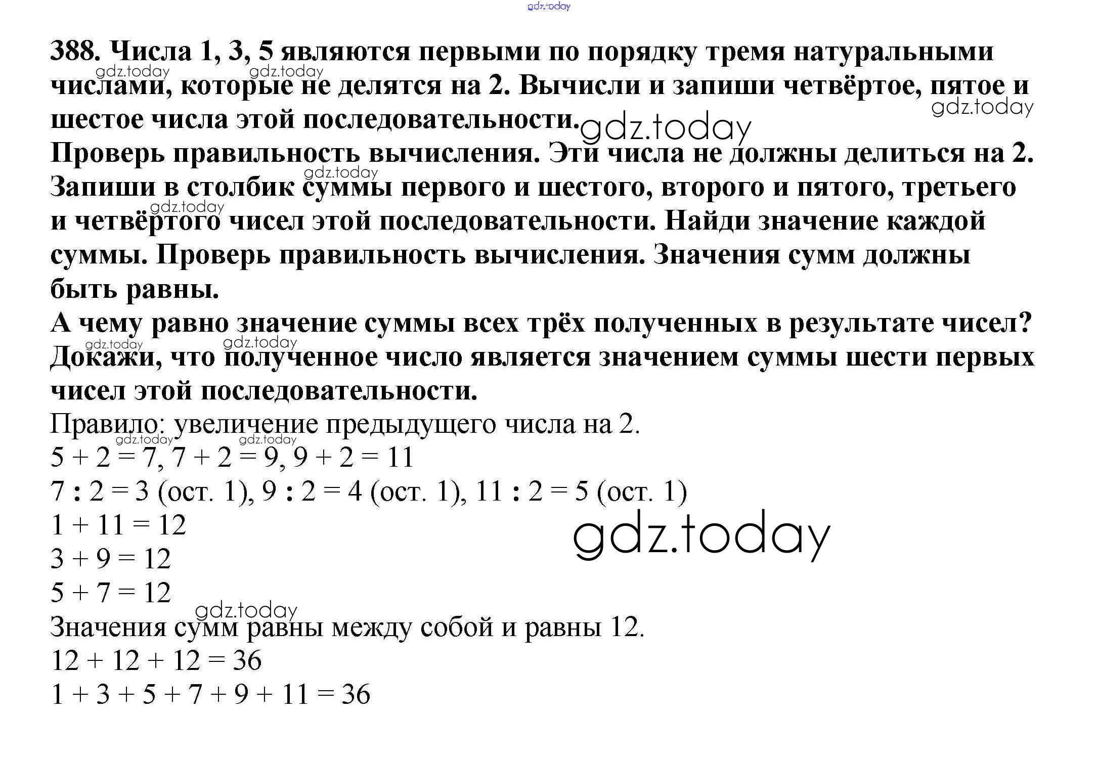 На страницах сайта gdz.today вы найдете учебный и вспомогательный материал, направленный на улучшения знаний школьной программы. ГДЗ - онлайн мир знаний Решение к части 2 (упражнения) 388 Учебнику по Математике для 4 класса Чекин Академкнига Перспективная начальная школа 2012