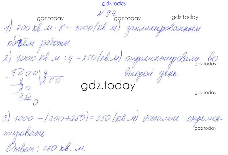 Ответы к Решение к части 2 (упражнения) 94 Учебнику по Математике для 4 класса Чекин Академкнига Перспективная начальная школа 2012