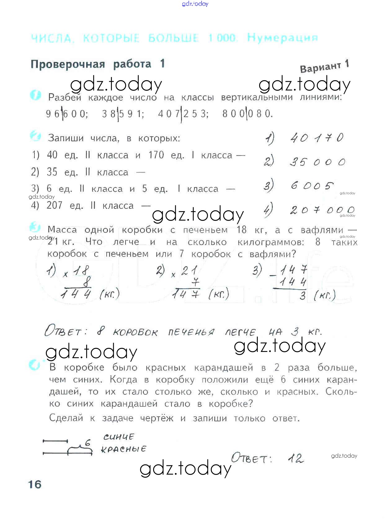 На страницах сайта gdz.today вы найдете учебный и вспомогательный материал, направленный на улучшения знаний школьной программы. ГДЗ - онлайн мир знаний Страницы (решение) 16 Проверочным работам по Математике для 4 класса Волкова Просвещение Школа России 2014