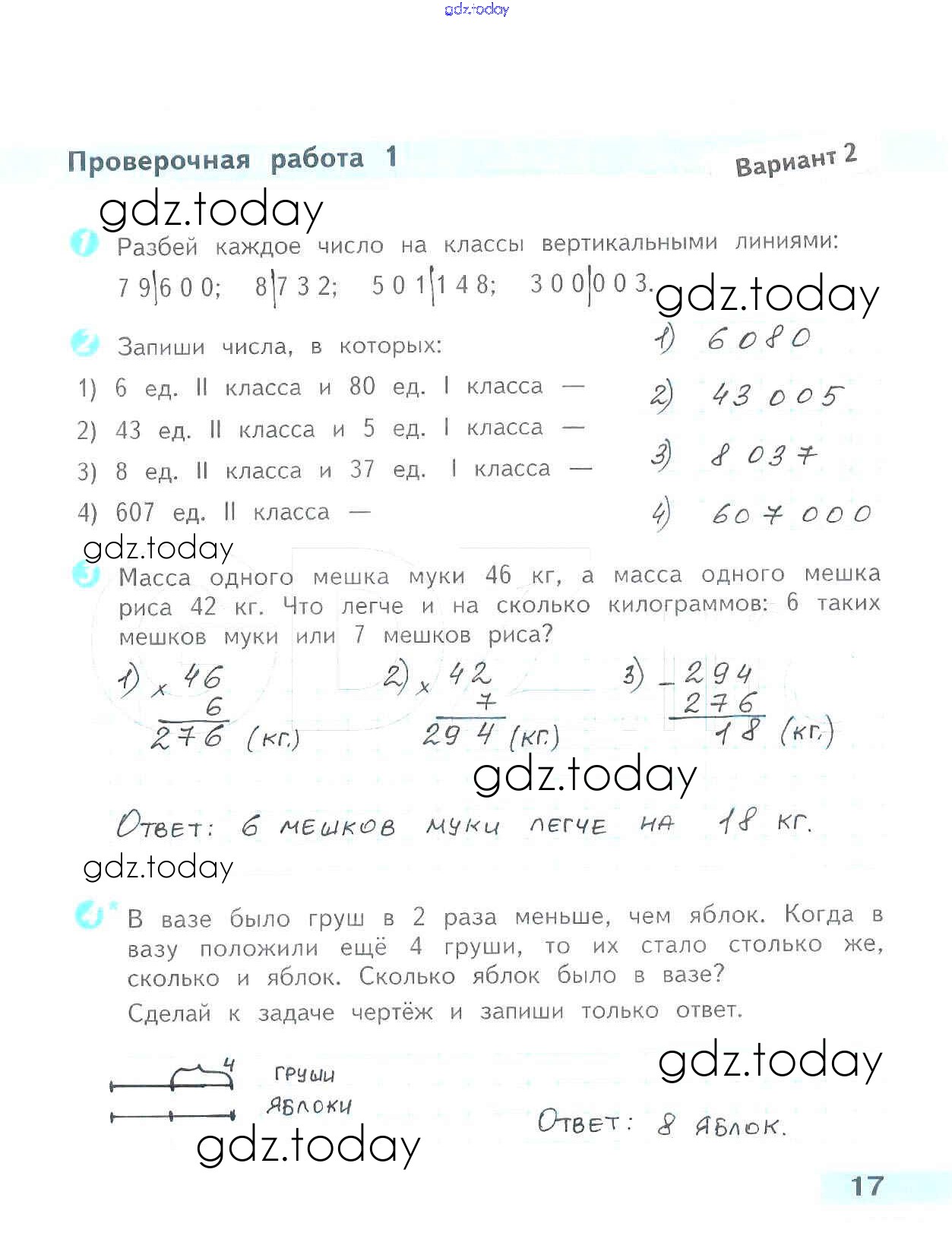 На страницах сайта gdz.today вы найдете учебный и вспомогательный материал, направленный на улучшения знаний школьной программы. ГДЗ - онлайн мир знаний Страницы (решение) 17 Проверочным работам по Математике для 4 класса Волкова Просвещение Школа России 2014