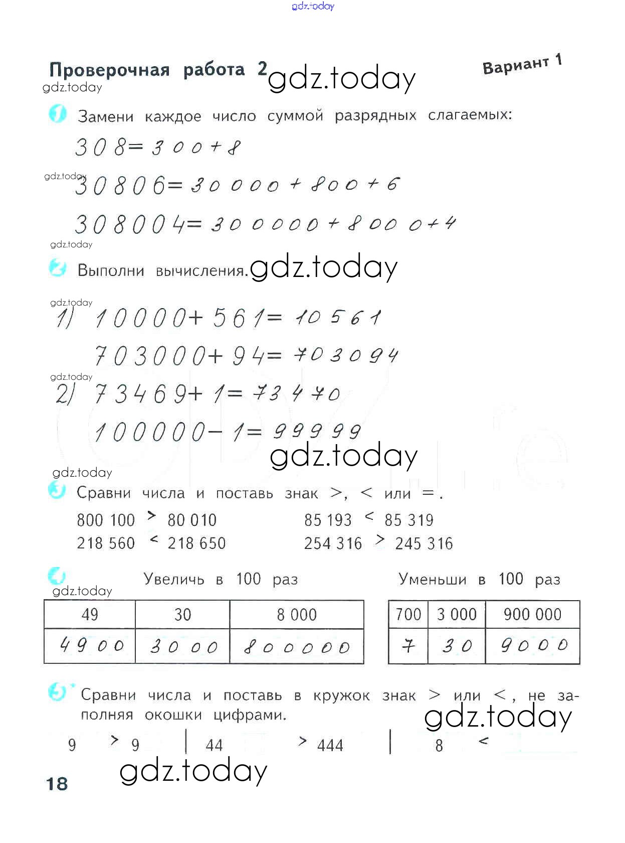 На страницах сайта gdz.today вы найдете учебный и вспомогательный материал, направленный на улучшения знаний школьной программы. ГДЗ - онлайн мир знаний Страницы (решение) 18 Проверочным работам по Математике для 4 класса Волкова Просвещение Школа России 2014