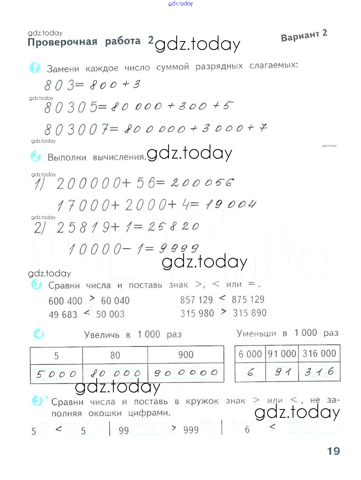 На страницах сайта gdz.today вы найдете учебный и вспомогательный материал, направленный на улучшения знаний школьной программы. ГДЗ - онлайн мир знаний Страницы (решение) 19 Проверочным работам по Математике для 4 класса Волкова Просвещение Школа России 2014