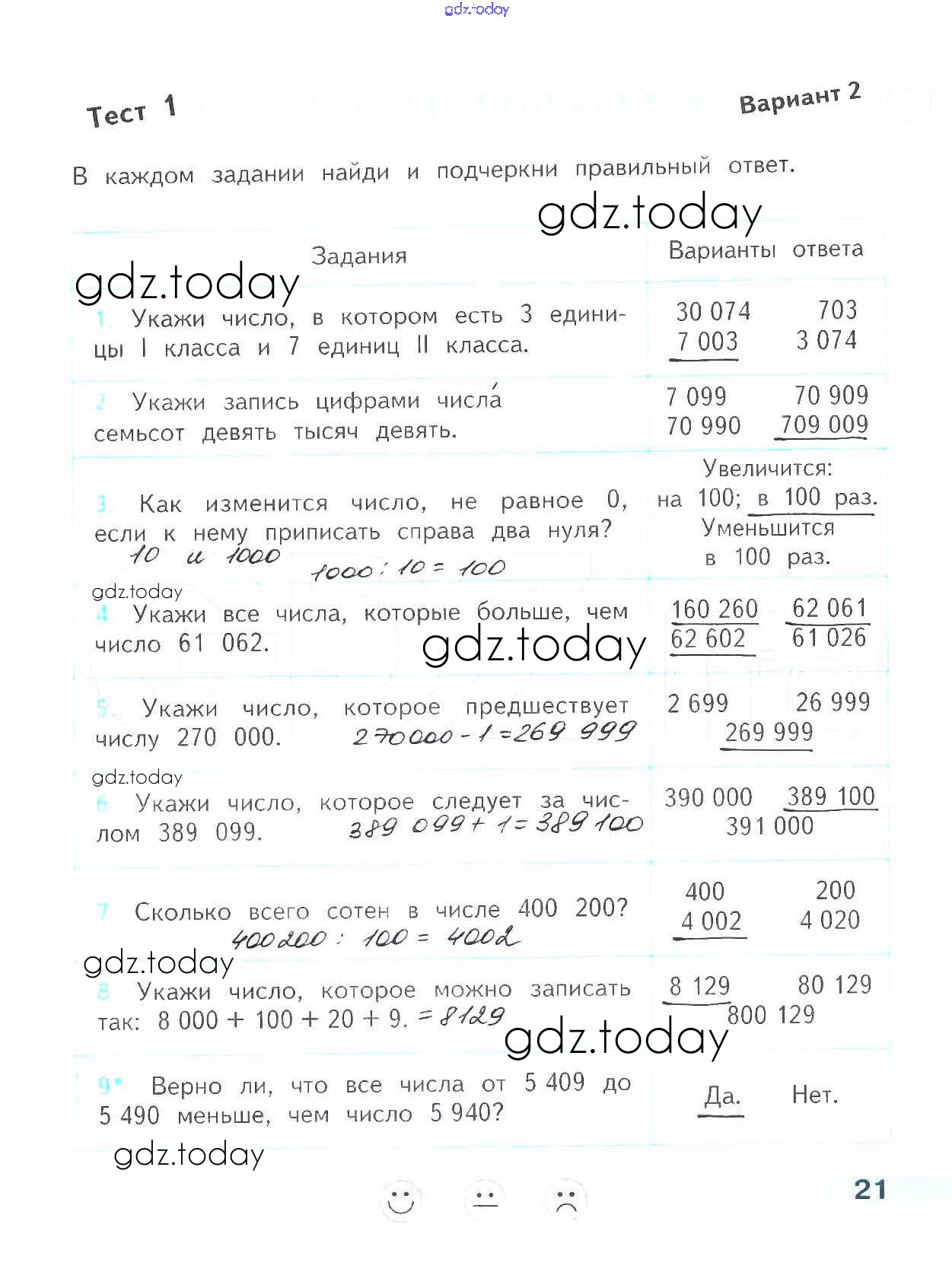 На страницах сайта gdz.today вы найдете учебный и вспомогательный материал, направленный на улучшения знаний школьной программы. ГДЗ - онлайн мир знаний Страницы (решение) 21 Проверочным работам по Математике для 4 класса Волкова Просвещение Школа России 2014