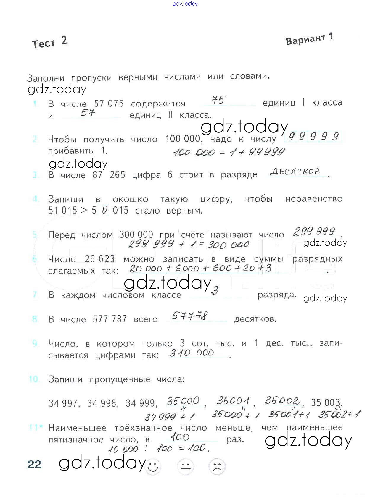 На страницах сайта gdz.today вы найдете учебный и вспомогательный материал, направленный на улучшения знаний школьной программы. ГДЗ - онлайн мир знаний Страницы (решение) 22 Проверочным работам по Математике для 4 класса Волкова Просвещение Школа России 2014