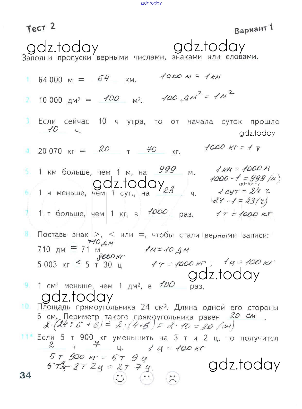 На страницах сайта gdz.today вы найдете учебный и вспомогательный материал, направленный на улучшения знаний школьной программы. ГДЗ - онлайн мир знаний Страницы (решение) 34 Проверочным работам по Математике для 4 класса Волкова Просвещение Школа России 2014