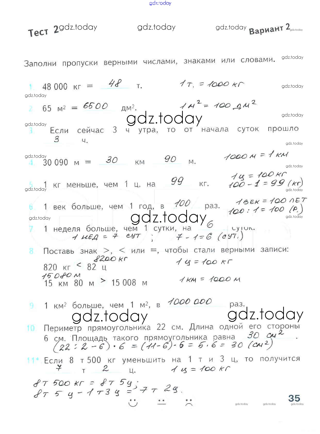На страницах сайта gdz.today вы найдете учебный и вспомогательный материал, направленный на улучшения знаний школьной программы. ГДЗ - онлайн мир знаний Страницы (решение) 35 Проверочным работам по Математике для 4 класса Волкова Просвещение Школа России 2014