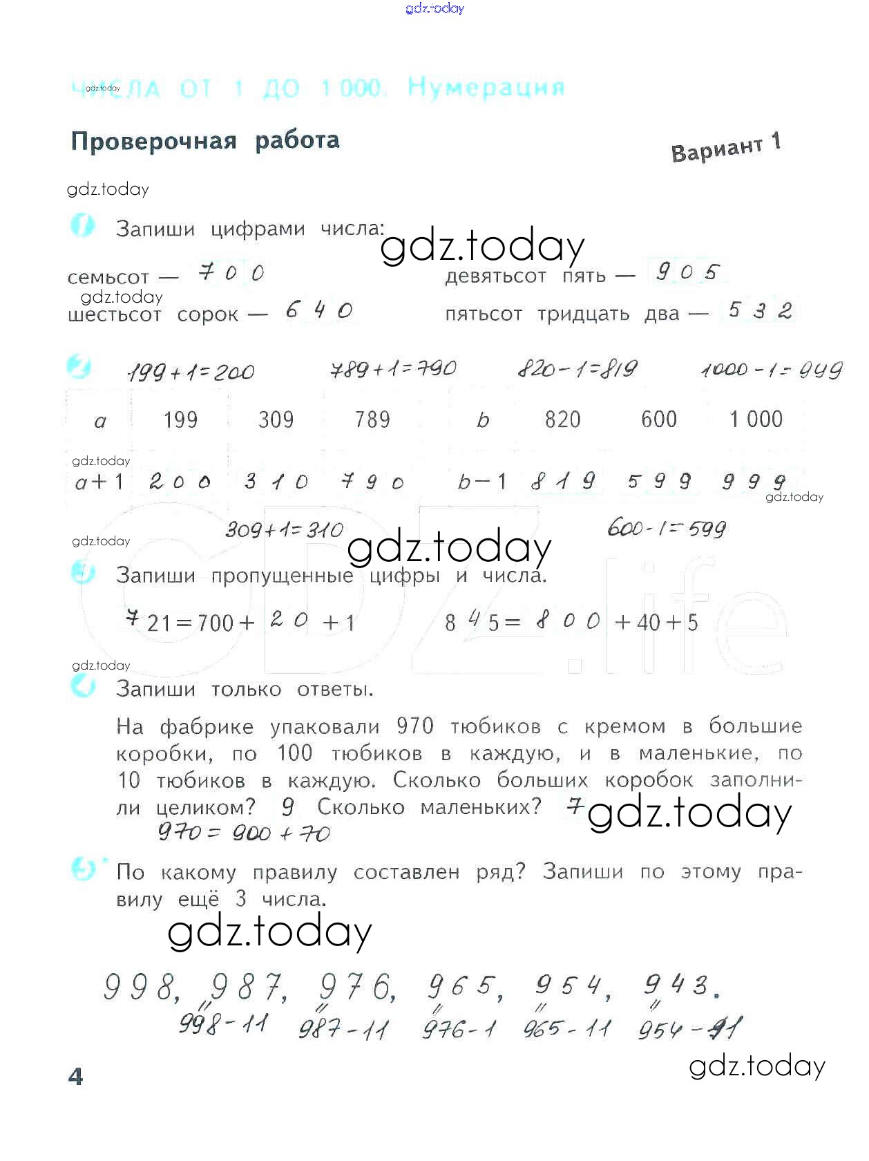 На страницах сайта gdz.today вы найдете учебный и вспомогательный материал, направленный на улучшения знаний школьной программы. ГДЗ - онлайн мир знаний Страницы (решение) 4 Проверочным работам по Математике для 4 класса Волкова Просвещение Школа России 2014