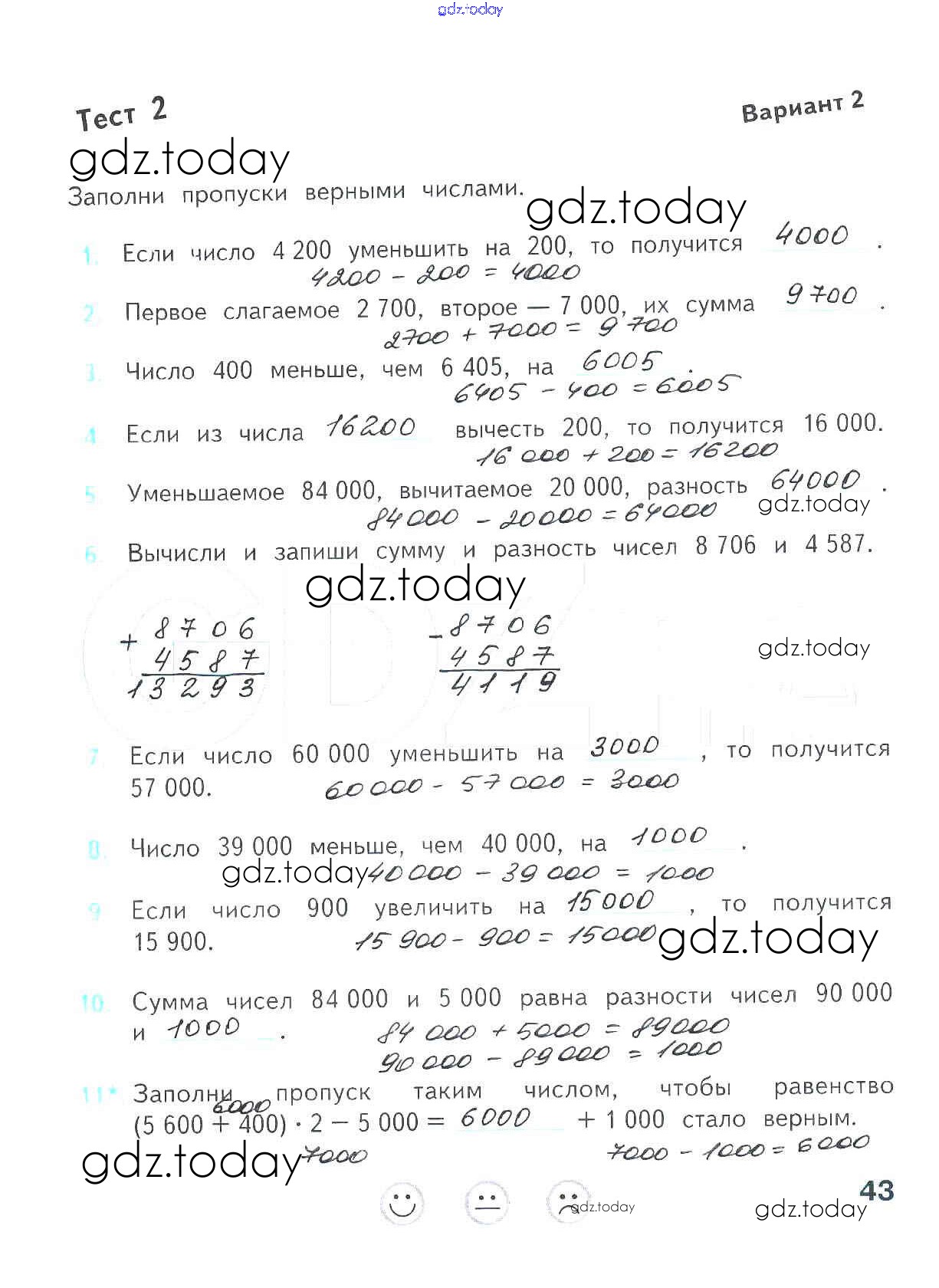 На страницах сайта gdz.today вы найдете учебный и вспомогательный материал, направленный на улучшения знаний школьной программы. ГДЗ - онлайн мир знаний Страницы (решение) 43 Проверочным работам по Математике для 4 класса Волкова Просвещение Школа России 2014