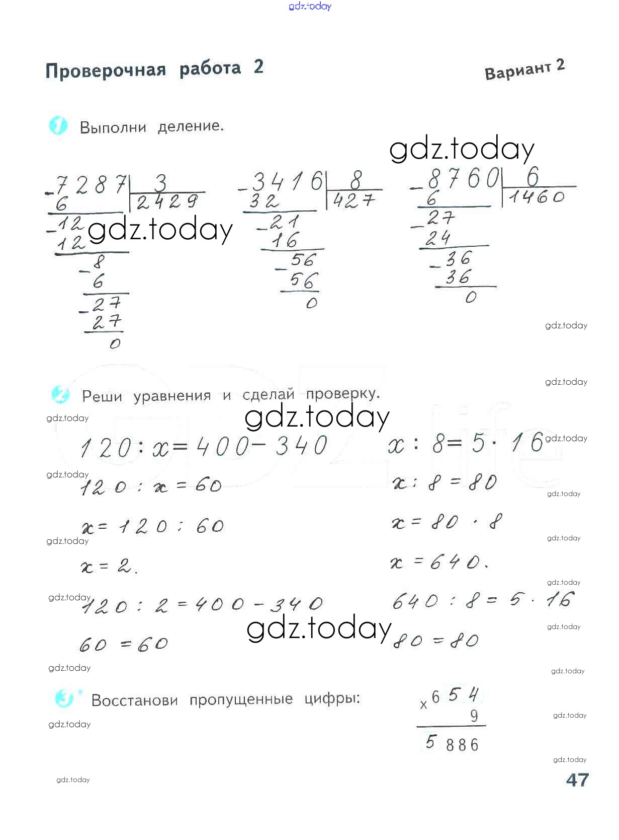 На страницах сайта gdz.today вы найдете учебный и вспомогательный материал, направленный на улучшения знаний школьной программы. ГДЗ - онлайн мир знаний Страницы (решение) 47 Проверочным работам по Математике для 4 класса Волкова Просвещение Школа России 2014