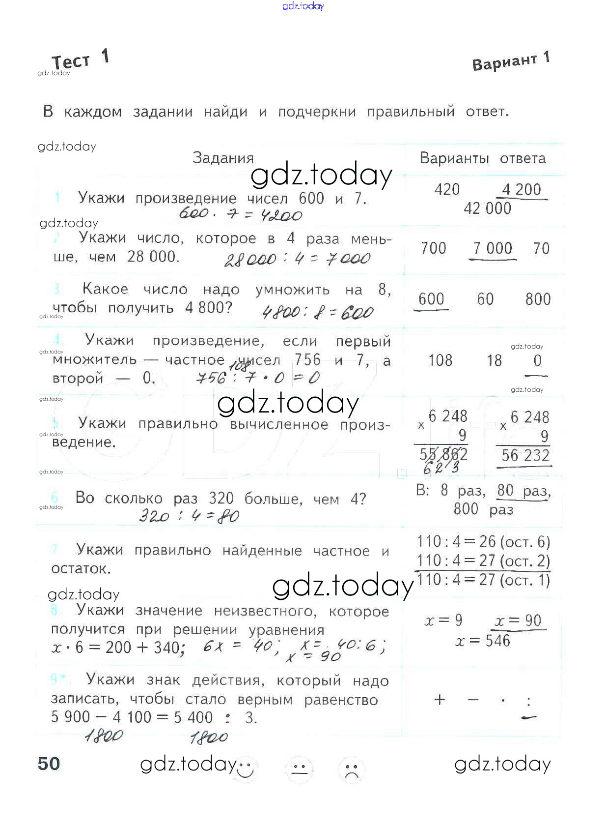 На страницах сайта gdz.today вы найдете учебный и вспомогательный материал, направленный на улучшения знаний школьной программы. ГДЗ - онлайн мир знаний Страницы (решение) 50 Проверочным работам по Математике для 4 класса Волкова Просвещение Школа России 2014