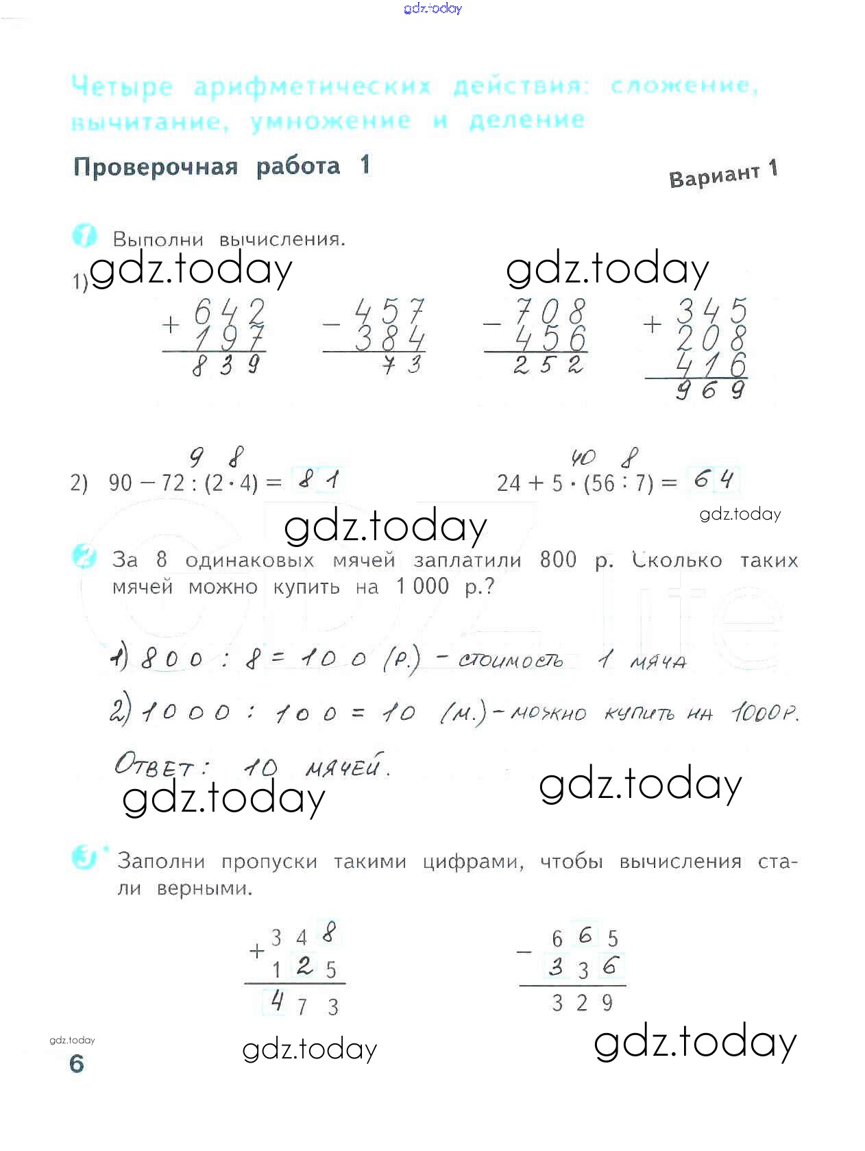 На страницах сайта gdz.today вы найдете учебный и вспомогательный материал, направленный на улучшения знаний школьной программы. ГДЗ - онлайн мир знаний Страницы (решение) 6 Проверочным работам по Математике для 4 класса Волкова Просвещение Школа России 2014