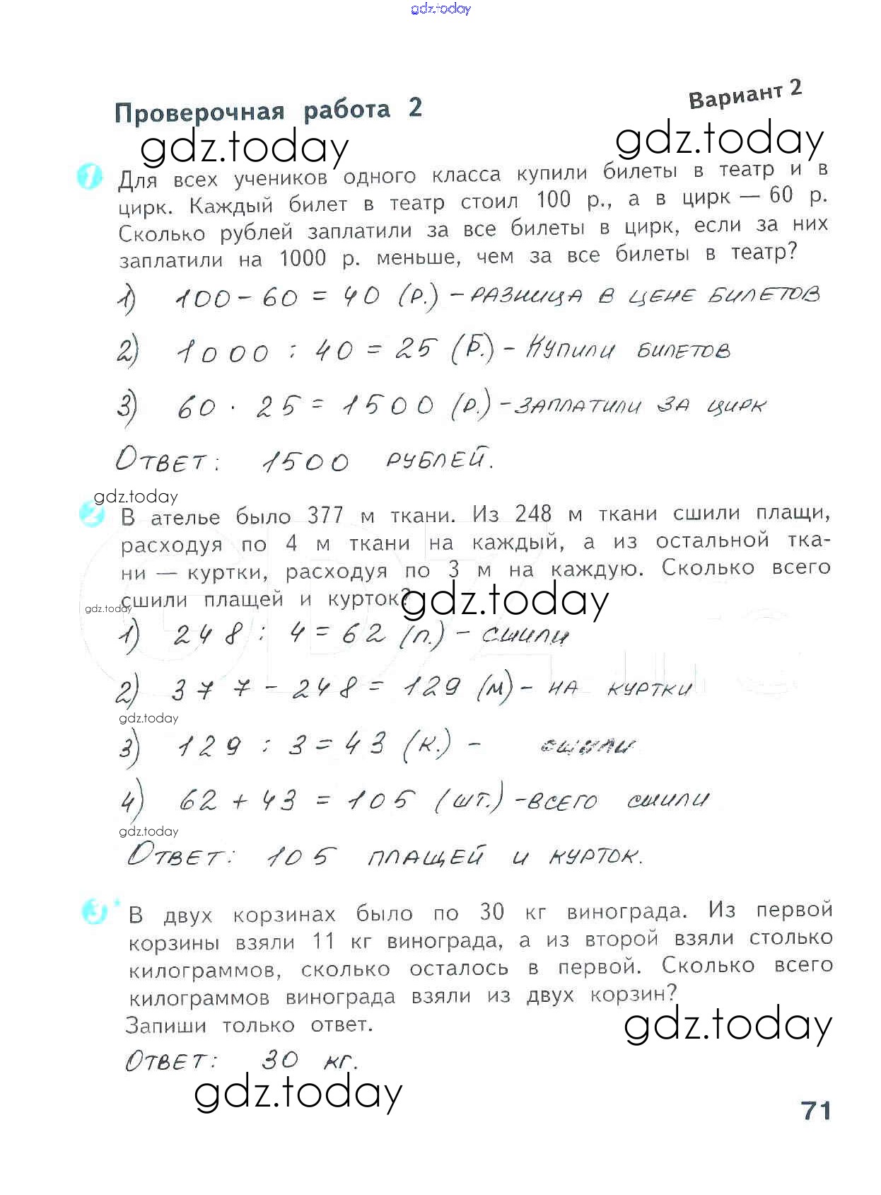 На страницах сайта gdz.today вы найдете учебный и вспомогательный материал, направленный на улучшения знаний школьной программы. ГДЗ - онлайн мир знаний Страницы (решение) 71 Проверочным работам по Математике для 4 класса Волкова Просвещение Школа России 2014