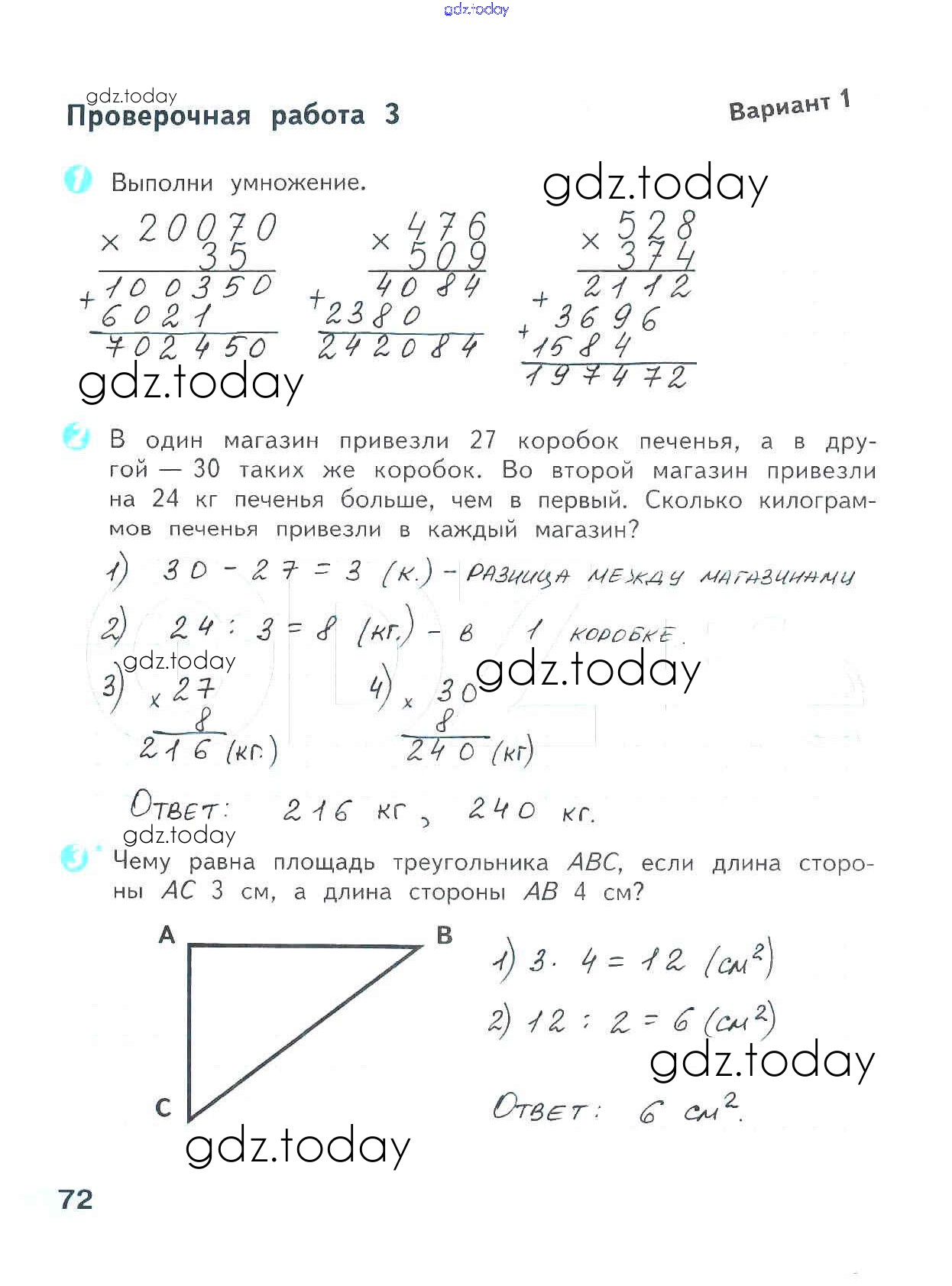 На страницах сайта gdz.today вы найдете учебный и вспомогательный материал, направленный на улучшения знаний школьной программы. ГДЗ - онлайн мир знаний Страницы (решение) 72 Проверочным работам по Математике для 4 класса Волкова Просвещение Школа России 2014